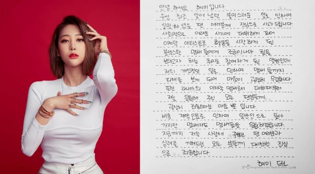 혜미는 11월 17일 블랙스완 공식 트위터에 자필 편지를 남겼다.